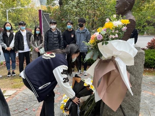随后,参观的同学们面向院士塑像肃穆鞠躬,为陈达院士献花,缅怀陈达院士不计个人得失、无私奉献的崇高精神。陈达院士的精神始终熠熠闪光,同学们在院士精神的感召下,必将以更加振奋的精神、更加积极的精神面貌,在学习道路上不断求索。