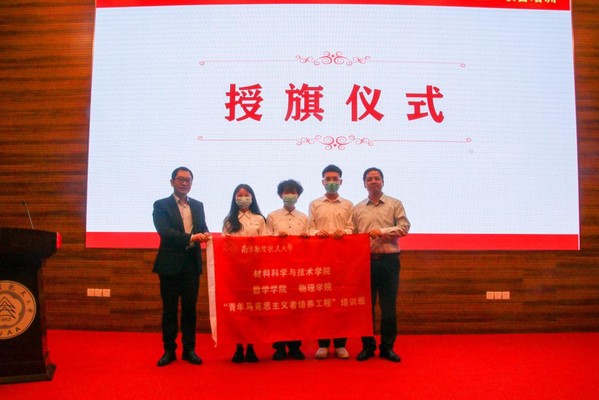 材料科学与技术德州扑克的玩法 党委书记石勇、物理德州扑克的玩法 党委书记陈修文共同为“青年马克思主义者培养工程”培训班授旗。