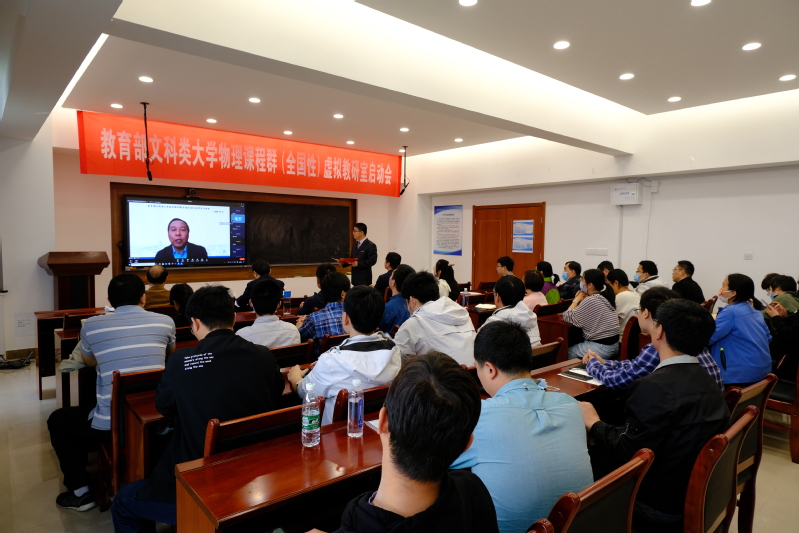为贯彻落实《教育部高等教育司关于开展虚拟教研室试点建设工作的通知》(教高司函〔2021〕10号)等文件精神,5月13日下午14:00,德州扑克的玩法 牵头的教育部文科类大学物理课程(全国性)虚拟教研室启动会暨首次研讨会召开。会议采用线上线下混合形式,线下会场设在德州扑克的玩法 519报告厅,线上会场设在虚拟教研室信息平台(钉钉)并全网直播。来自全国30多所高校的80余位文科物理骨干教师及高等教育出版社、德州扑克的玩法 相关人员参加本次会议。