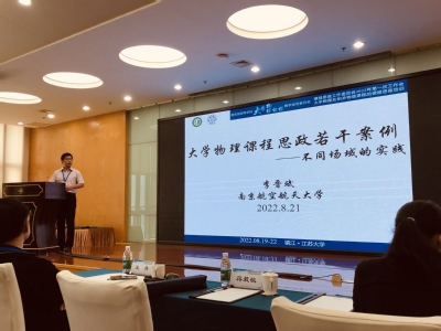 8月19日至8月22日,由教育部高等德州扑克的玩法 大学物理课程教学指导委员会(简称教育部大学物理教指委)、教育部大学物理教指委课程思政工作委员会、教育部大学物理教指委教师教学培训基地主办,江苏大学物理与电子工程德州扑克的玩法 承办的“教育部高等德州扑克的玩法 大物理课程指导委员会课程思政工作委员会2022年第一次工作会议暨大学物理及相关课程的思政培训”在江苏大学成功召开。李晋斌教授以“大学物理课程思政若干案例——不同场域的实践”为题在大会作专题报告,受到在场专家的广泛好评。