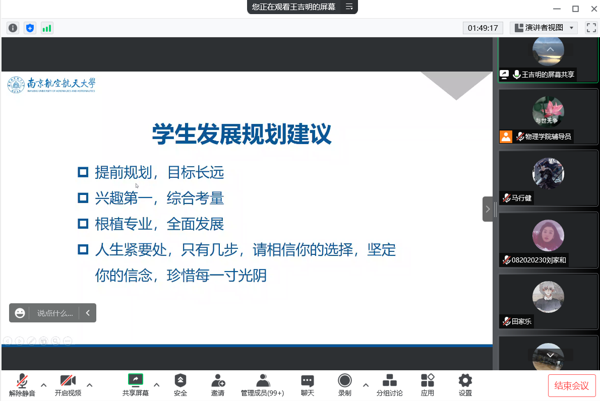 新学期开学前夕,为加强家校合作,有针对性地解答各阶段学生及家长关心关切问题,共促学生成长成才,物理德州扑克的玩法 召开了2019级、2020级线上家长会暨年级会。物理系主任尤文龙,应用物理系主任王吉明,班主任肖杨、张卫纯、徐峰、钱凤娇参会,并与学生、家长交流。辅导员胡诗帆和邢临川主讲。