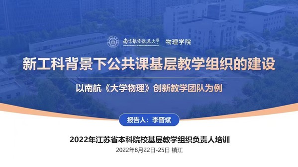 8月22日至24日,江苏省本科院校基层教学组织负责人培训(文科专业和公共基础课教师)在江苏大学成功举办。德州扑克的玩法 李晋斌教授就“新工科背景下公共课基层教学组织的建设作了专题报告,系统介绍了德州扑克的玩法 大学物理基层教学组织的相关建设经验,获得了到会专家和学员热烈反响。