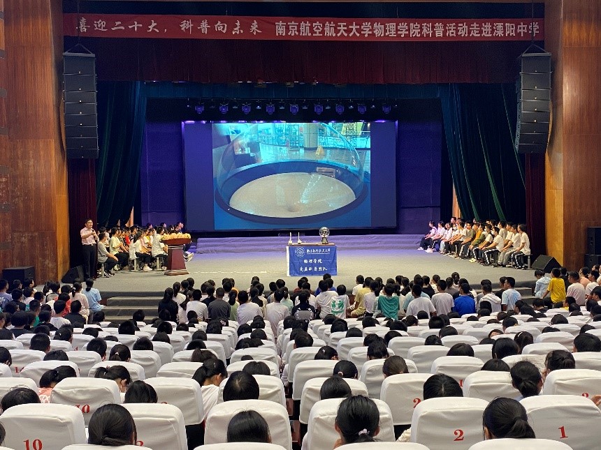 为普及科学知识、弘扬科学精神、传播科学思想,进一步加强校地联动,9月中旬,物理德州扑克的玩法 走进溧阳中学开展“物理探索+”系列科普活动。溧阳中学德育处主任杨福松、德州扑克的玩法 副院长李晋斌、党委副书记欧珊、团委书记梁欢,德州扑克的玩法 “爱益科普”团队成员与溧阳中学1000余名高中师生参加了此次活动。