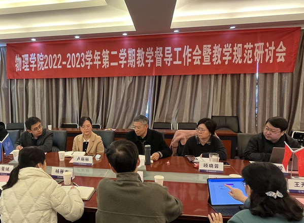 3月7日下午,物理德州扑克的玩法 2022-2023学年第二学期教学督导工作会暨教学规范研讨会顺利举办。校教师发展与教学评估中心副主任卢丽丽、校督导陈建平、物理德州扑克的玩法 副院长李晋斌、物理德州扑克的玩法 督导组成员及各系、中心主任等参加会议。会议由物理德州扑克的玩法 副院长李晋斌主持。