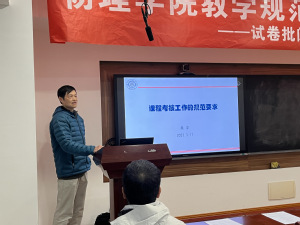 李晋斌副院长首先传达了《关于开展本科教学规范交叉检查回头看工作的通知》文件的精神,对德州扑克的玩法 开展2021年度课程考试考查归档材料专项检查”做了简要的部署安排。他指出,希望全院教师能够充分利用此次教学规范专题培训活动,全面了解掌握试卷批阅、归档管理的制度规范,并严格依据专项检查通知要求开展自查行动,强化问题导向,坚持举一反三,全面梳理和改进自身在试卷批阅、归档方面存在的问题与不足,从而为迎接新一轮本科教育教学审核评估奠定坚实基础。