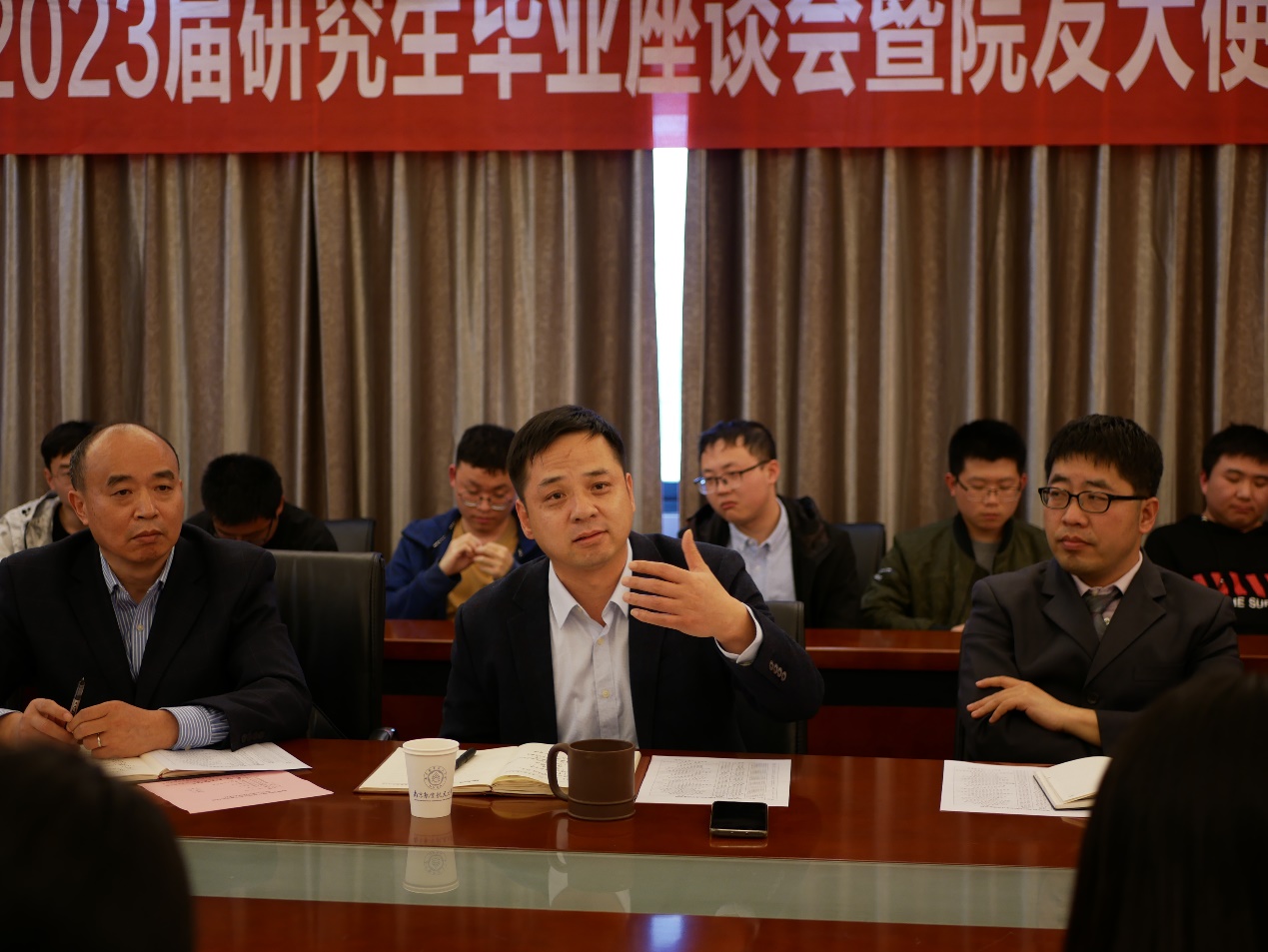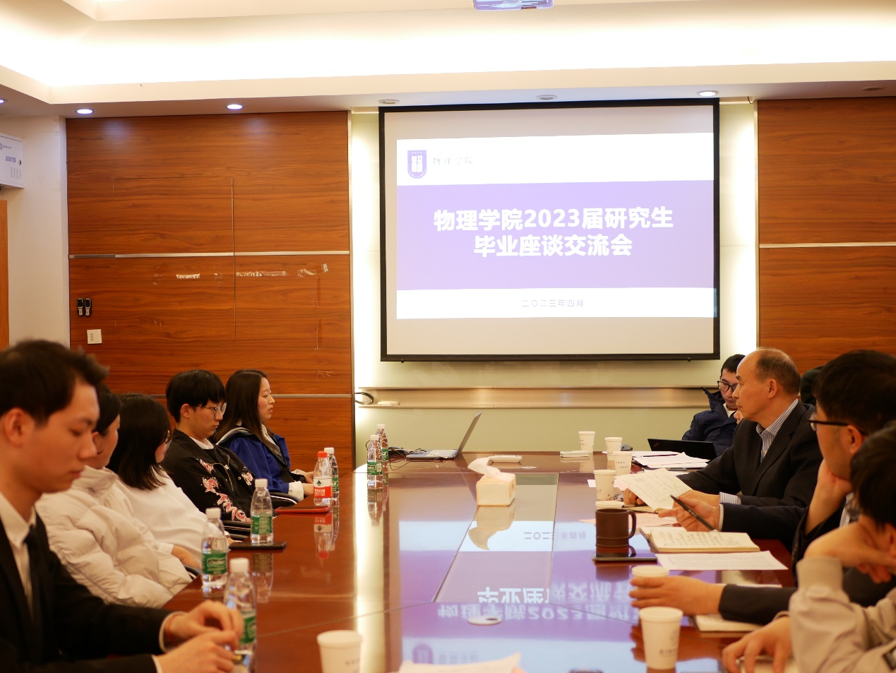 4月6日下午,物理德州扑克的玩法 2023届研究生毕业座谈会暨院友大使聘任仪式在理学楼517会议室举行。德州扑克的玩法 党委书记陈修文、院长刘友文、党委副书记欧珊、副院长李晋斌、德州扑克的玩法 研究生教育管理工作组成员以及全体2023届毕业生参加此次座谈交流。会议由欧珊主持。