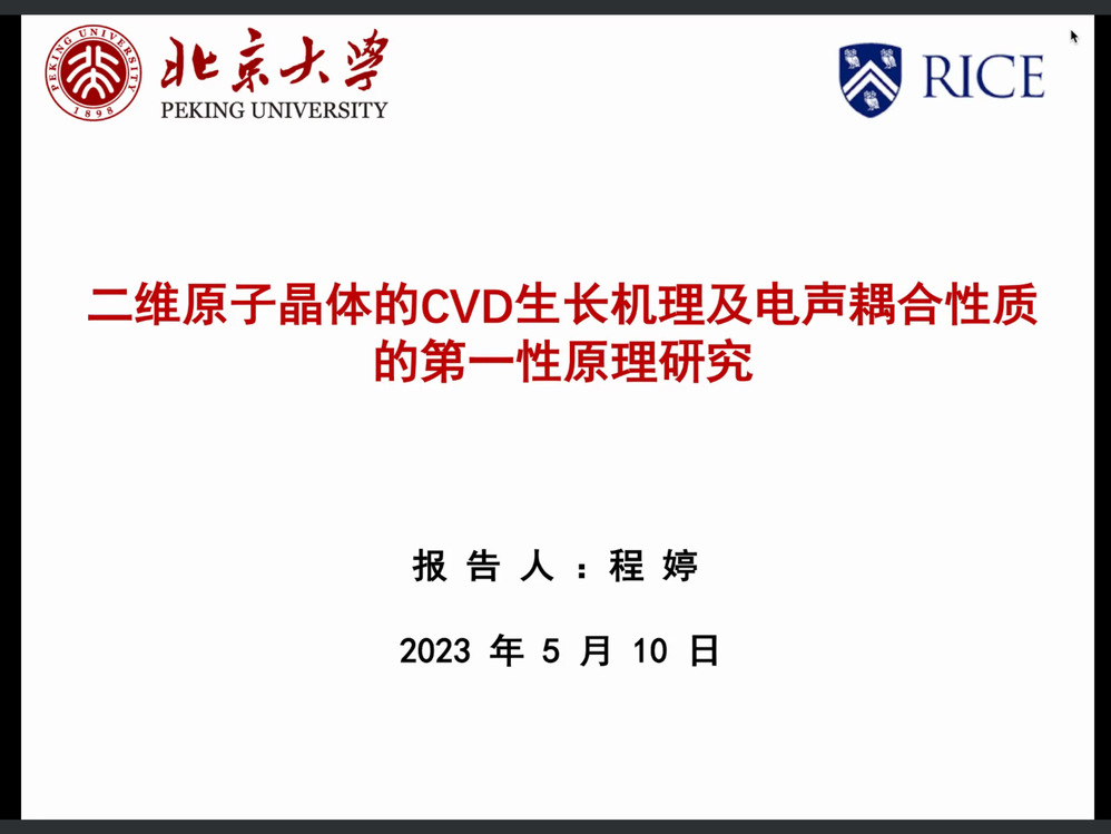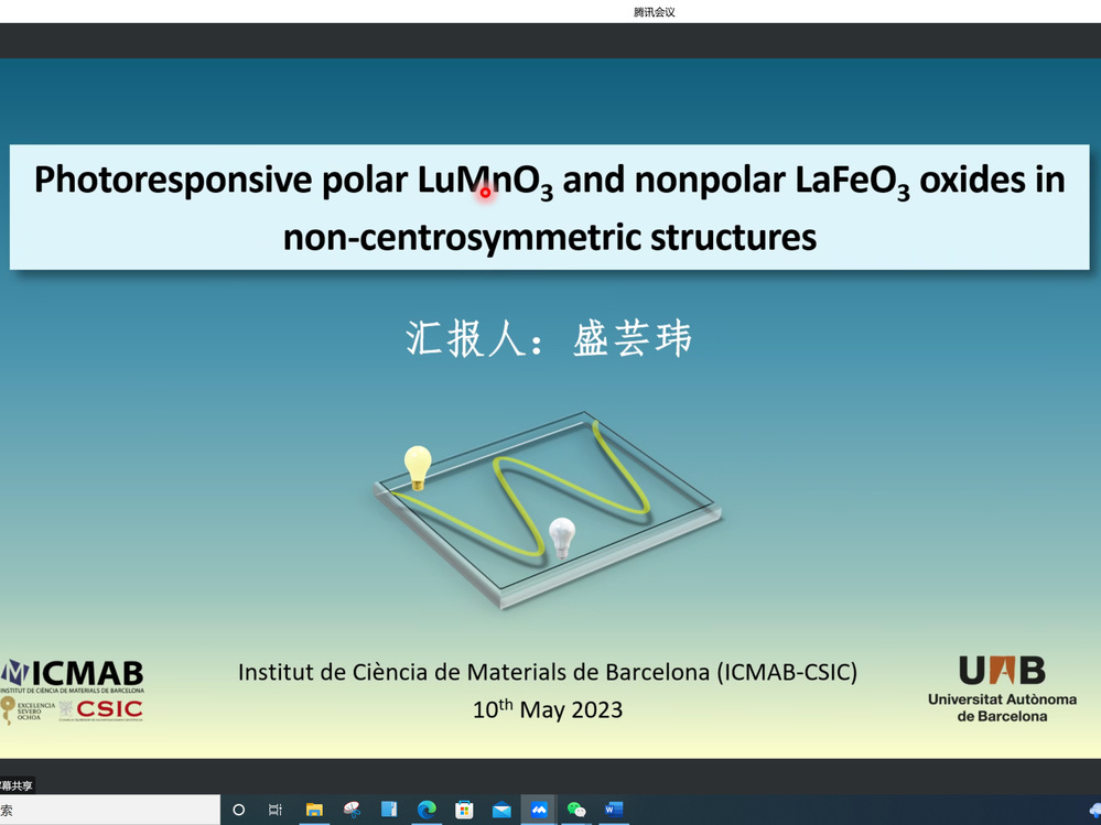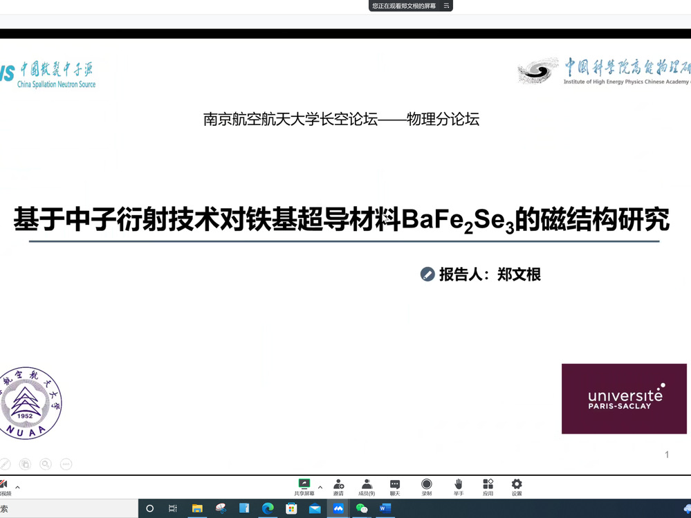 随后,青年学者分别围绕Investigation on quantum resources and their applications、二维原子晶体材料的CVD生长机理及电声耦合性质的第一性原理研究、基于射频原子磁强计的电磁感应成像、基于光纤光栅智能传感器的飞行器结构健康监测技术、钙钛矿薄膜微结构调控与光电器件研究、基于中子衍射技术对铁基超导材料BaFe2Se3的磁结构研、Photoresponsive polar LuMnO3 and nonpolar LaFeO3 oxides in non-centrosymmetric structures进行了学术报告,线上线下同步参与的专家学者们就报告内容进行了深入探讨与交流。