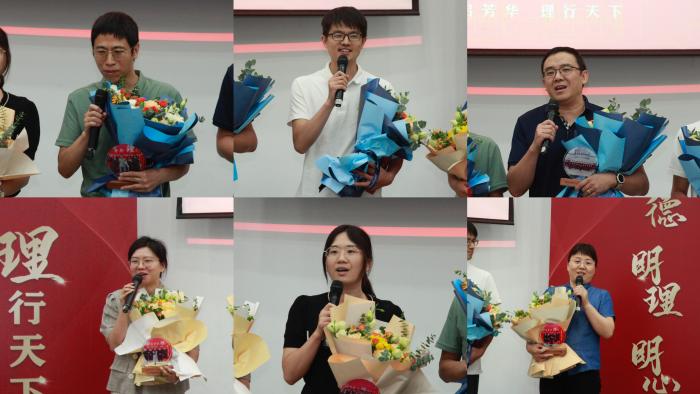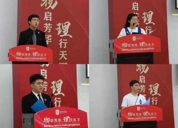 毕业典礼上,四名毕业生代表上台分享自己的成长奋斗经历。保研至中国科德州扑克的玩法 大学理论物理研究所的王家祺,从参加科创、竞赛,担任物理爱好者协会会长的经历出发,讲述了自己在师友的帮助下一路追梦的故事;直博德州扑克的玩法 的张钰皓用担任院青协主席、参与社会实践的经历证明,学霸也有多彩的大学生活;顺利就业的冯宇昊分享自己从大二开始的求职就业路,告诉大家机会是留给有准备的人的;高文达分享了自己从留级边缘到绩点3.6,最后成功考研本校成功逆袭的故事,鼓励学弟学妹们永不放弃、砥砺前行。