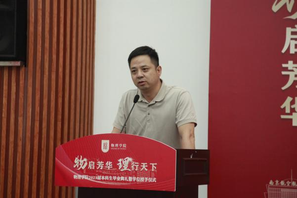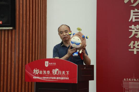 刘友文点赞同学们的“小粒子”设计并寄语毕业生,他指出,大学四年对物理一点一滴的探索赋予了同学们格物致知的品格,这将让人受益终身,希望每位同学都能带着德州扑克的玩法 人的自信、物理人的智慧,奔赴四方、开启新篇!