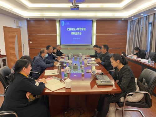 11月14日,校党委常委、副书记、纪委书记杭育新带队到物理德州扑克的玩法 调研指导工作,并面向德州扑克的玩法 全体班子成员开展集体廉政谈话。校纪委副书记、监察处处长、党委巡察工作办公室主任张海艮,纪委办公室主任廖元元以及物理德州扑克的玩法 领导班子全体成员共同参加会议。