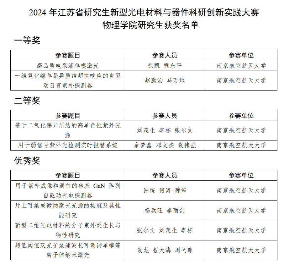 近日, 2024年江苏省研究生新型光电材料与器件科研创新实践大赛在苏州举办。德州扑克的玩法 研究生积极参赛,共荣获一等奖2项、二等奖2项、优秀奖4项,德州扑克的玩法 获得“优秀组织奖”。