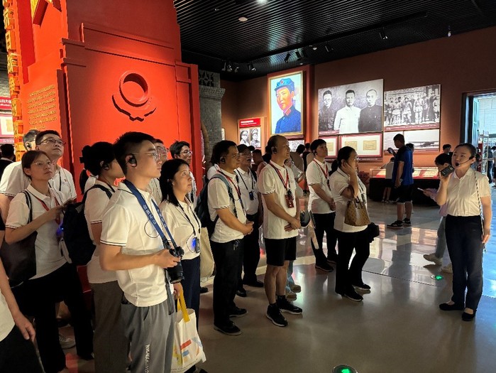 30日,实践团前往杨家岭革命旧址和枣园革命旧址,参观了毛泽东等中央领导同志在延安居住时间最长的驻地,聆听了现场教学课。在结班仪式上,党委副书记欧珊和教师党支部书记钱凤娇分别分享了此次学习的心得体会。