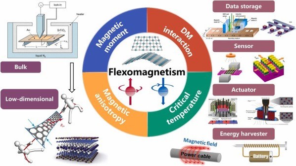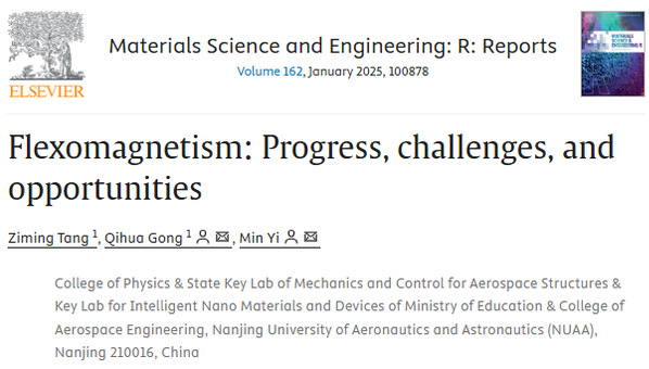 相关成果以“Flexomagnetism: progress, challenges, and opportunities”为题在线发表于材料科学与应用物理顶级期刊《Materials Science and Engineering R》(IF=31.6)。博士生唐梓铭为第一作者,龚琦花博士为共同第一作者和共同通讯作者。