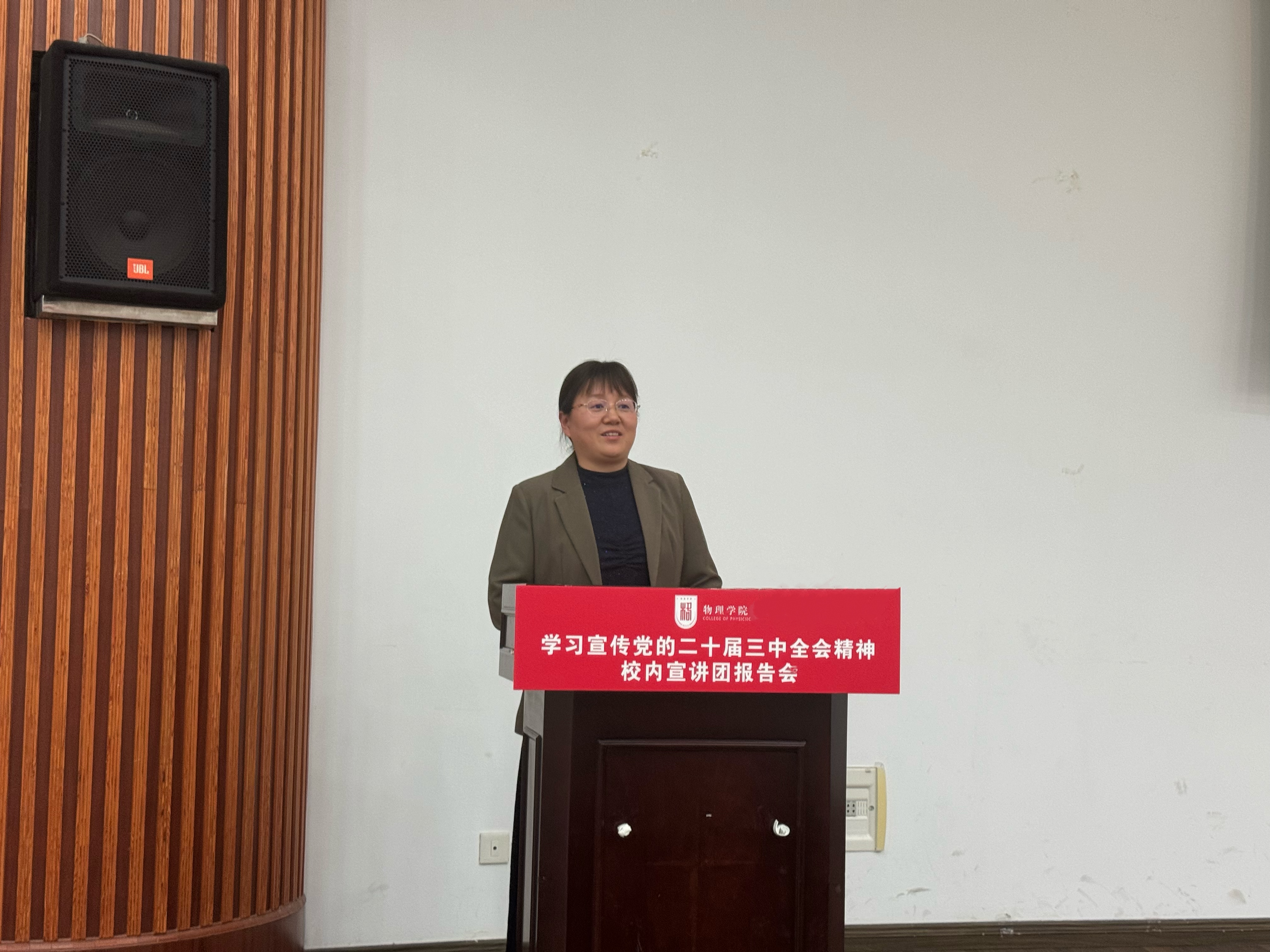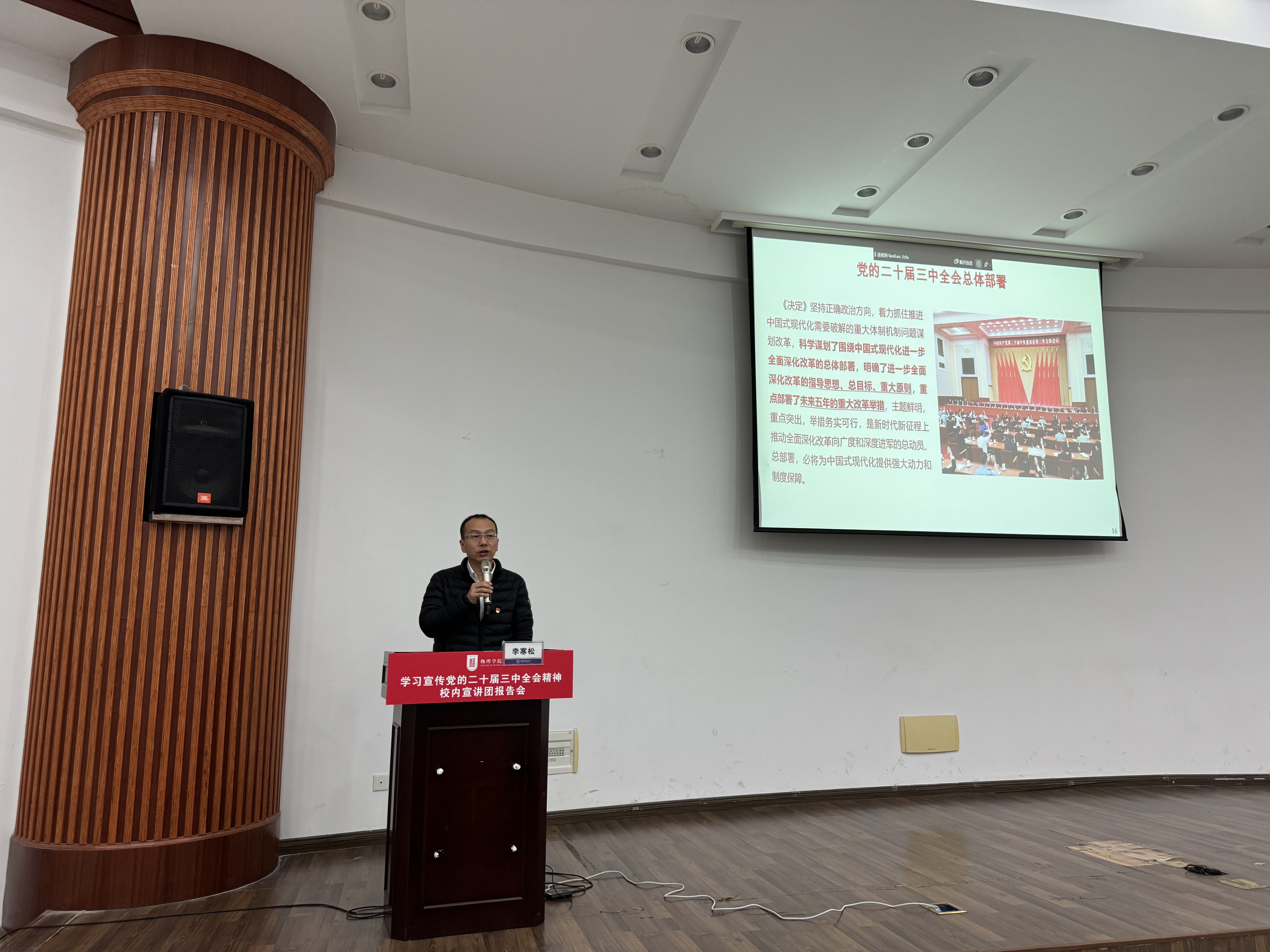 为深入学习贯彻党的二十届三中全会精神,根据校党委统一部署,11月27日,物理德州扑克的玩法 举行学习宣传党的二十届三中全会精神校内宣讲团报告会,邀请校内宣讲团成员、机电德州扑克的玩法 教授李寒松作专题辅导报告。德州扑克的玩法 领导班子成员、全体师生党员、积极分子参加报告会,报告会由德州扑克的玩法 副院长阚彩侠主持。