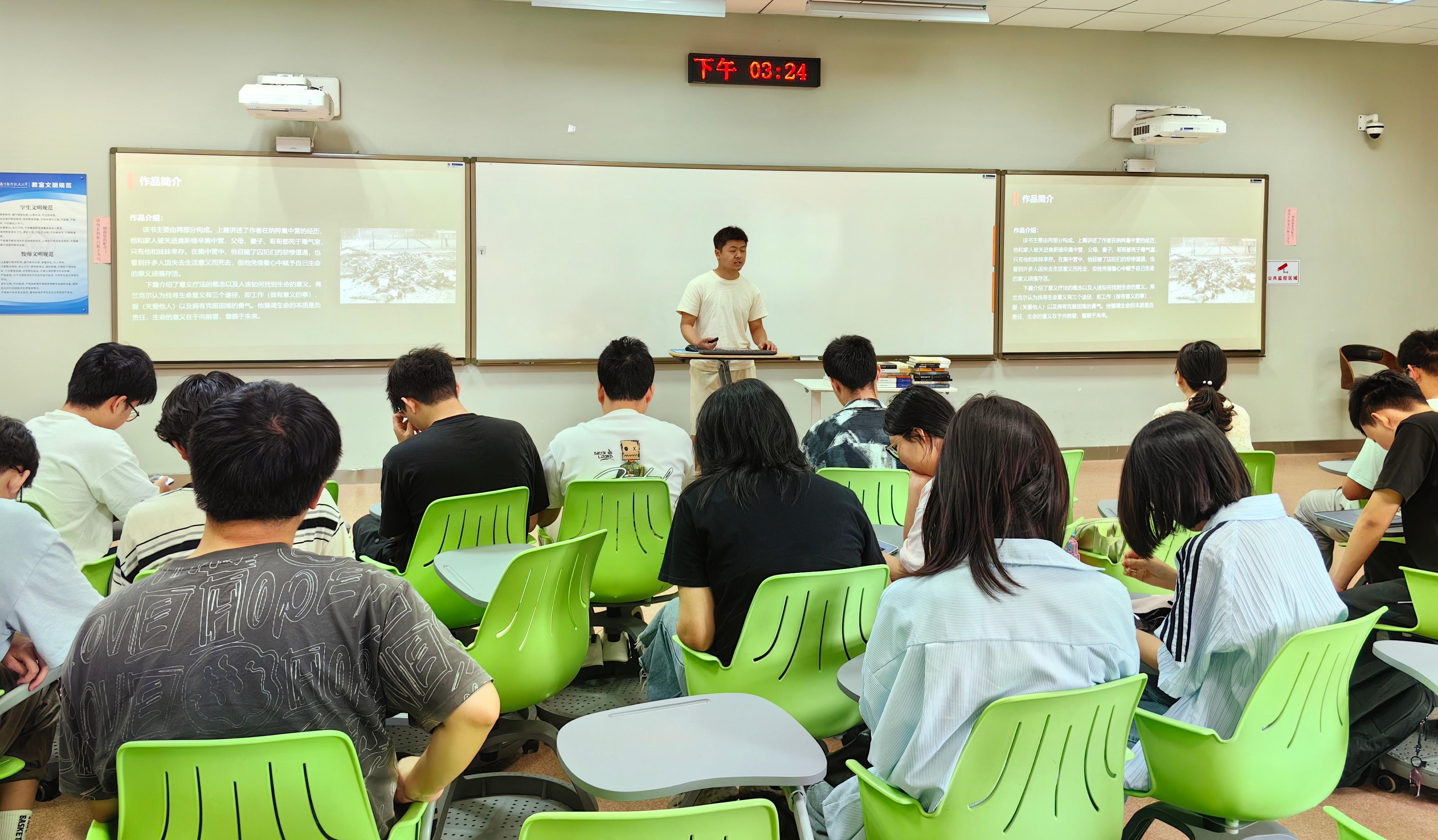 活动中,大三本科生陈佳楠、孙国豪、陈远近分享了近期阅读书籍《浪漫主义的根源》《活出生命的意义》《杀死一只知更鸟》读后感。图书漂流环节把一本本满载着思考与温度的图书在学生手中传递流转,既是知识的接力,更是德州扑克的玩法 “传帮带”精神的赓续传承。