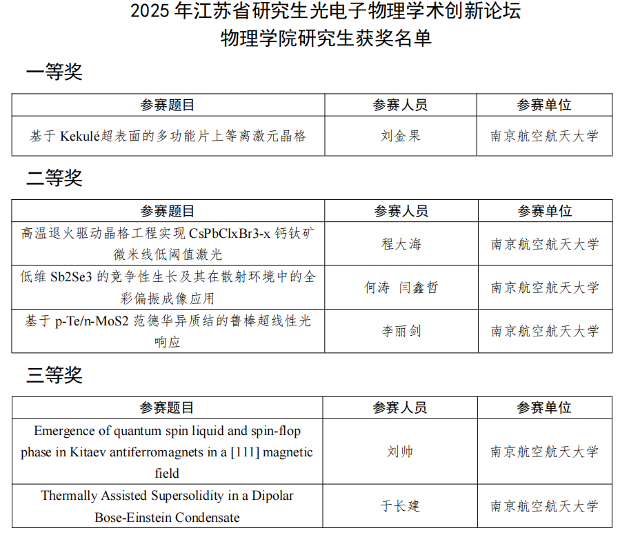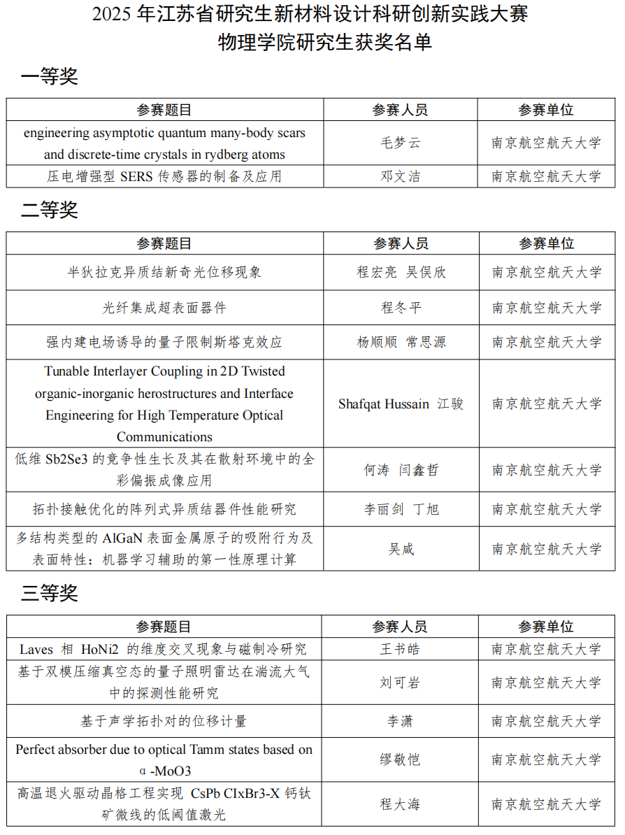 近日,2025年江苏省研究生新材料设计科研创新实践大赛、江苏省研究生光电子物理学术创新论坛分别在镇江举办。德州扑克的玩法 研究生积极参赛,共荣获一等奖3项、二等奖10项、三等奖7项。