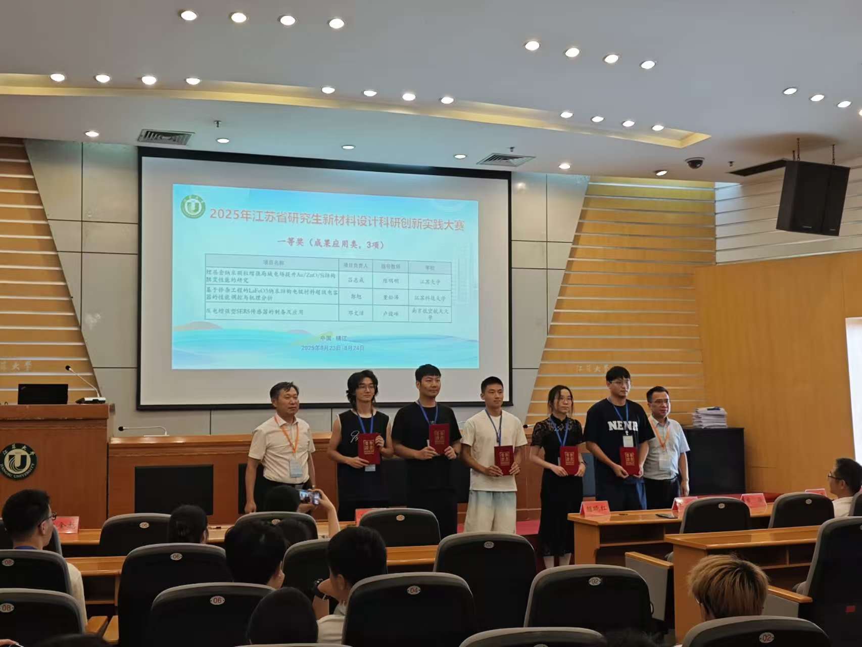 2025年江苏省研究生新材料设计科研创新实践大赛由江苏省理学I类研究生教育指导委员会主办,江苏大学与苏州科技大学联合承办。来自南京大学、东南大学、湖南大学等十余所省内外高校的近200支研究生团队报名参赛。经过预赛遴选,50余支优秀队伍晋级决赛。经过评委小组严格评审,最终评选出一等奖6项、二等奖16项、三等奖20项及优秀奖若干。