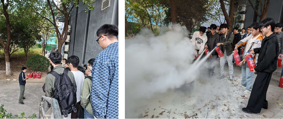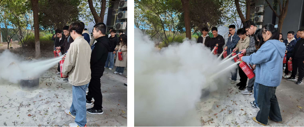 接下来的实操部分,参训人员亲自参与了灭火器的使用演练。在专业教官的指导下,大家学习了灭火器的正确使用方法,并进行了模拟灭火实操演练。通过亲身体验,实验室学生和研究生新生不仅掌握了灭火器的使用技巧,还增强了在火灾初期进行自救和救援的能力。