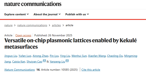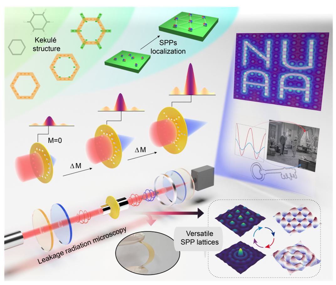 物理德州扑克的玩法 光电功能材料器件与物理研究团队曹水艳副研究员与国际前沿科学研究院刘衍朋教授合作,研究了一种多功能Kekulé超表面平台与基于此系列超表面结构的多自由度可控SPP晶格,实现了表面等离子体激元在二维极限下的晶格类型、空间分布及位点相对强度的可控参数调控;构建了片上可重构的面内/面外光源阵列,并进一步证明了的SPP晶格作为图像加密/解密的技术应用。相关成果以“基于Kekulé超表面的多功能片上等离激元晶格(Versatile on-chip plasmonic lattices enabled by Kekulé metasurfaces)”为题在线发表于《Nature Communications》。物理德州扑克的玩法 22级电子信息专业硕士生刘金果、罗宇凡及聊城大学赵爱荣博士为论文共同第一作者,曹水艳副研究员和国际前沿科学研究院刘衍朋教授为共同通讯作者。光电功能材料器件与物理研究团队阚彩侠教授、姜明明教授、杜朝玲副教授也参与了该工作的研究。