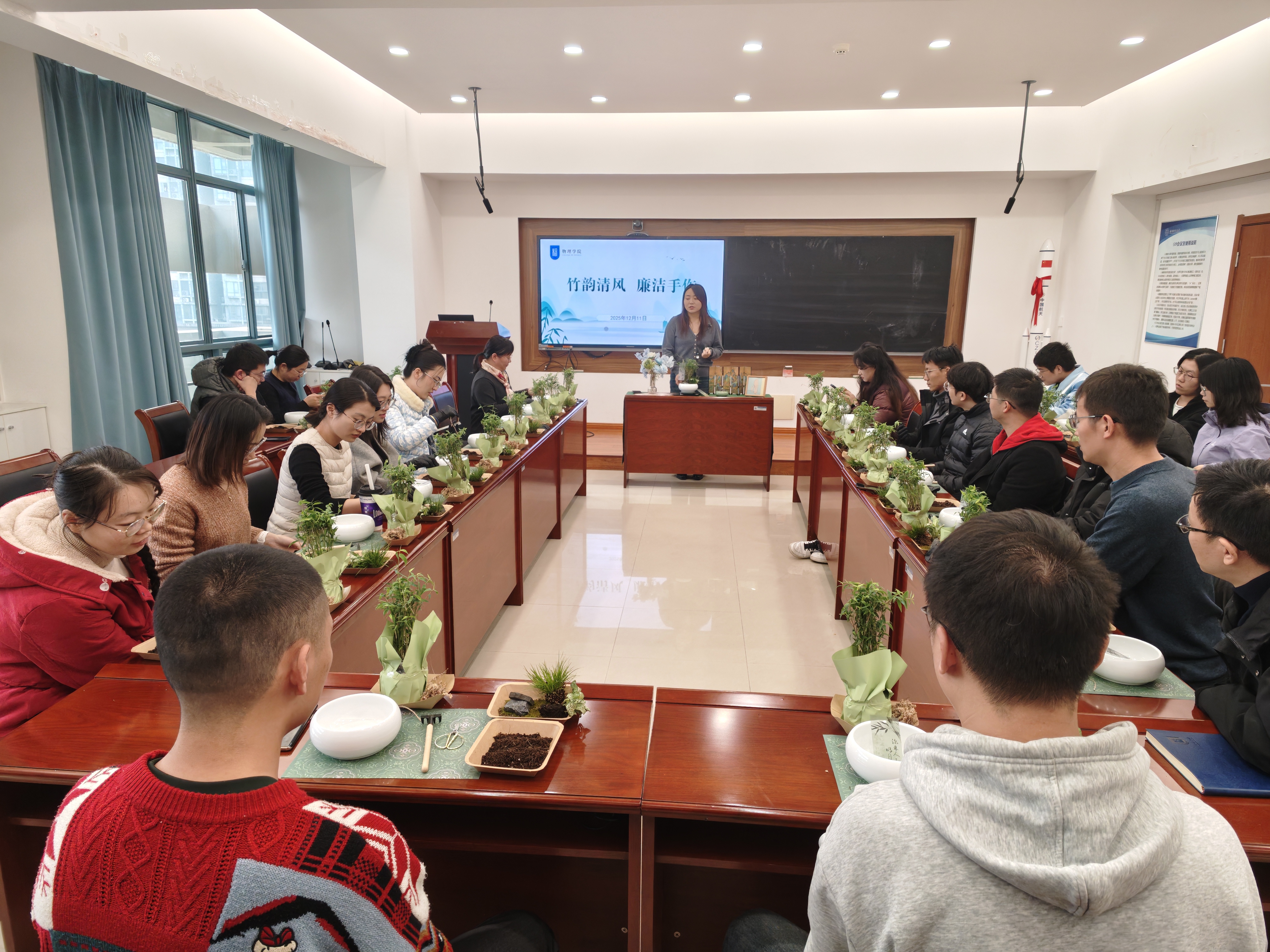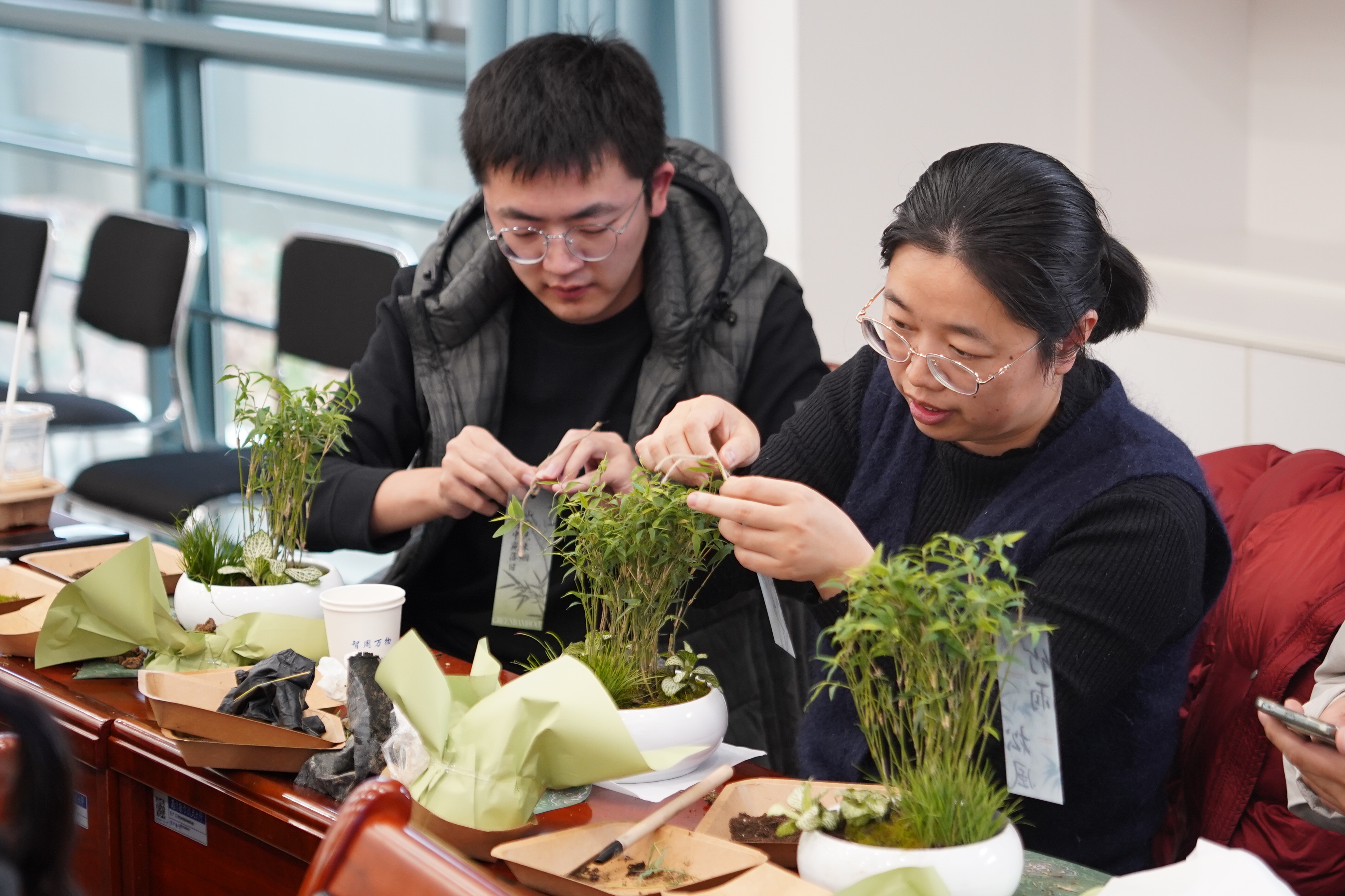 党课结束后,进入“竹韵清风・廉心手作”实践环节。德州扑克规则 创新采用中式绿植手作形式,精心准备青龙石、鲜竹枝、苔藓等造景材料,将廉洁教育与传统美学有机结合。参与活动的教职工专注投入创作,从材料选择到景观布局,深度挖掘竹子“外直中空、清影坚韧”的廉洁文化内涵,完成了兼具艺术价值与教育意义的清廉主题绿植盆栽作品。实践环节通过沉浸式体验,让廉洁理念在实践操作中入脑入心,切实达到了“以手作悟廉道、以绿植润初心”的教育目标。