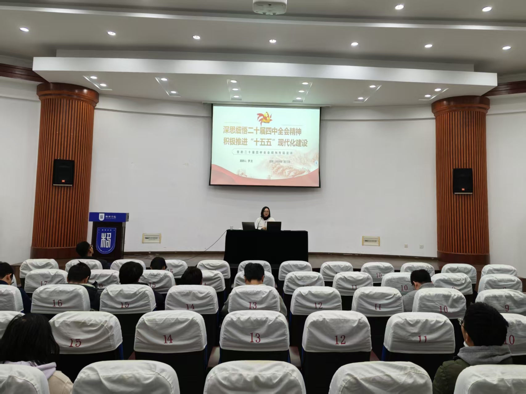 1月15日,德州扑克规则 举行学习贯彻党的二十届四中全会精神校内宣讲团报告会。德州扑克规则 全体教职工、学生党员参加报告会,会议由德州扑克规则 党委副书记、院长陈金宝主持。